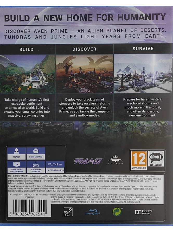 Garanția Calității Forgames: Fiecare disc de PS4 este verificat manual la sediul nostru din Focșani. Ne asigurăm că Aven Colony se instalează corect și rulează impecabil pe consola ta.