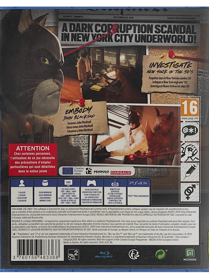 Blacksad Under The Skin PS4 joc second-hand