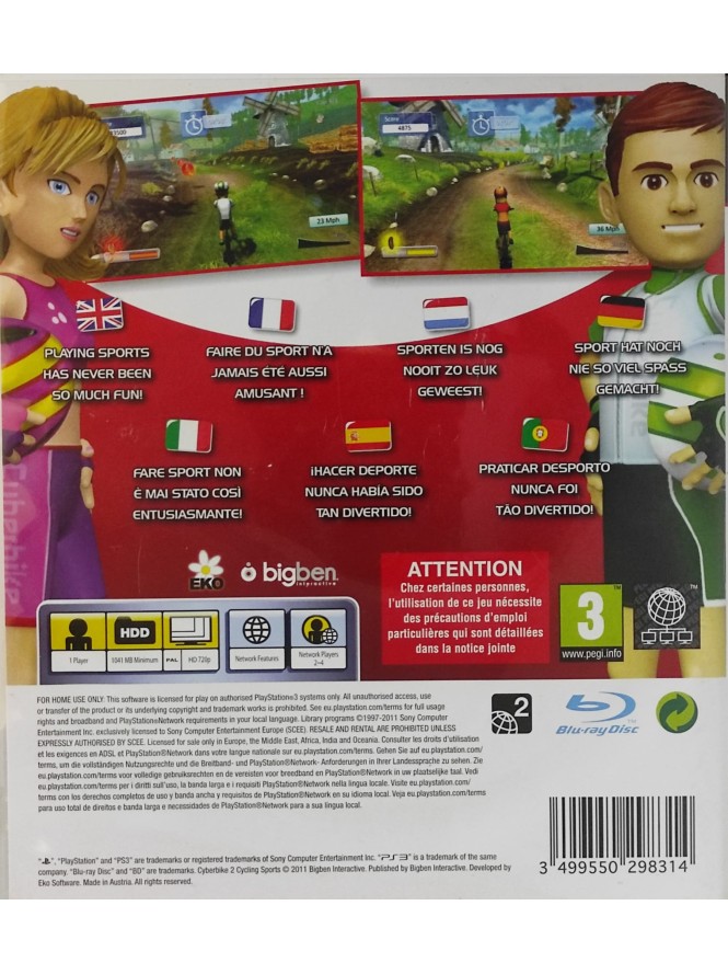 Cyberbike 2 pentru PlayStation 3 este un joc interactiv de fitness care combină distracția cu mișcarea fizică, fiind special creat pentru a fi utilizat împreună cu accesoriul Cyberbike (bicicletă staționară compatibilă PS3). Jocul transformă exercițiile fizice într-o experiență captivantă, ideală pentru copii, adolescenți și adulți.