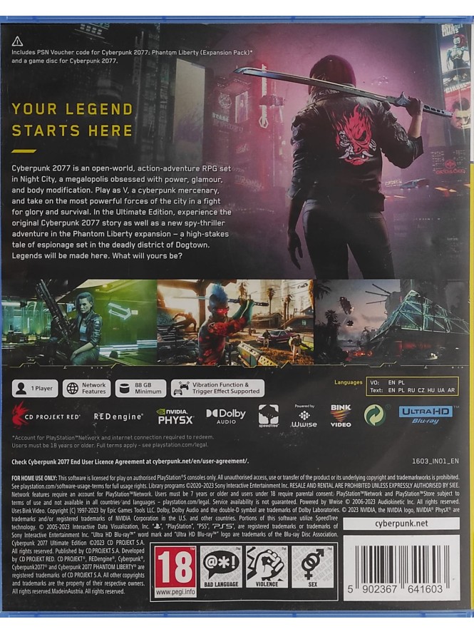 -CREEAZĂ-ȚI PROPRIUL CYBERPUNK: Devino un haiduc urban echipat cu îmbunătățiri cibernetice și construiește-ți legenda pe străzile din Night City.