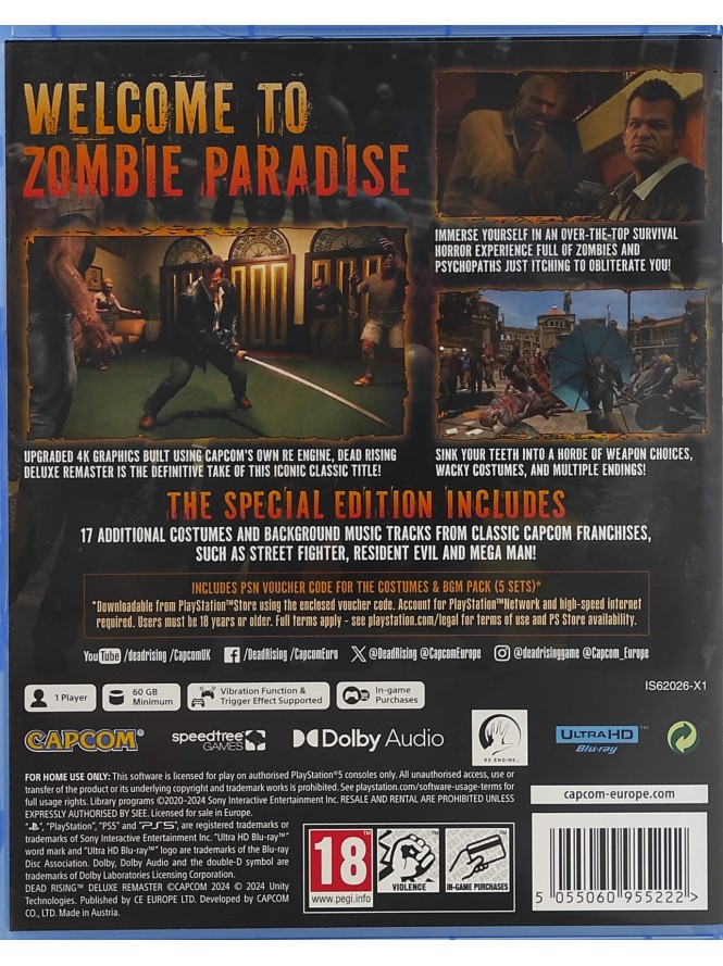 Mai mult decât o simplă remasterizare, acest Deluxe Remaster este o revizuire grafică completă a primului joc din seria de jocuri de acțiune „Dead Rising” care măcelărește zombi.