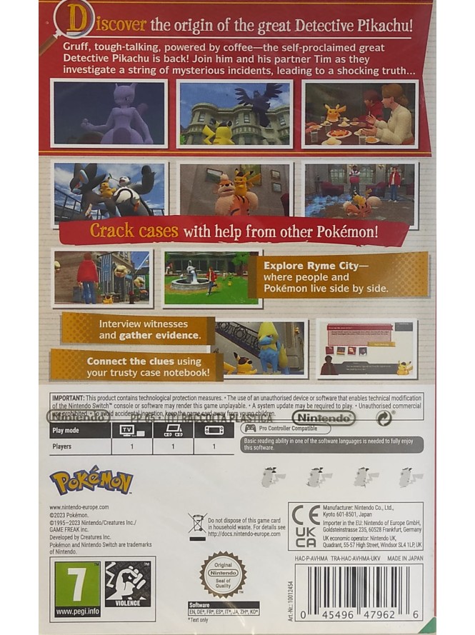Descoperiți o serie de enigme în Ryme City alături de un Pikachu care vorbește dur și adoră cafeaua și care se autointitulează un mare detectiv.