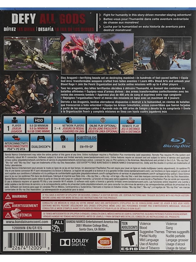 -GOD EATER 2: Rage Burst continuă saga epică GOD EATER, oferind eroi noi și eroi care se întorc, o personalizare bogată a personajelor și a armelor și peste 100 de ore de conținut de poveste și de joc, cu voce integrală în limba engleză.