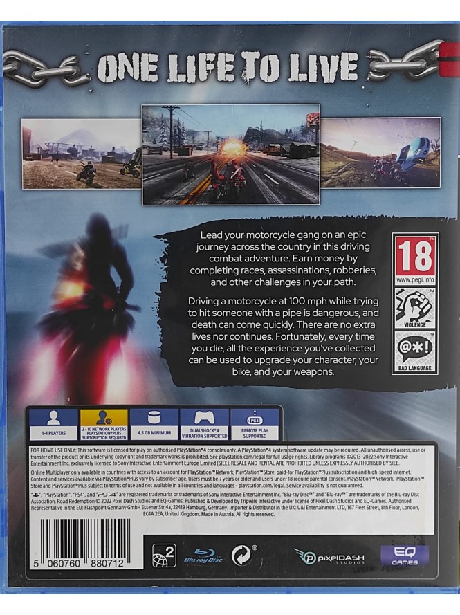 Road Redemption este un joc de curse de acțiune în care îți conduci banda de motociclete într-o călătorie epică de urmărire, sânge și viteză. Prin călătoriile tale, îți vei îmbunătăți caracterul, bicicleta și armele, completând curse, asasinate, jafuri și multe altele.