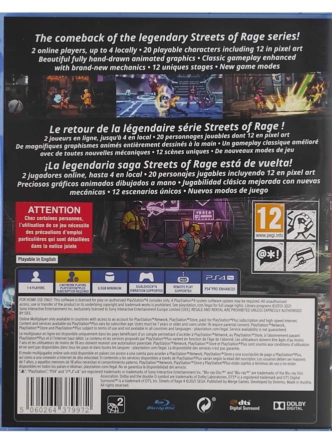 Streets Of Rage 4 Anniversary Edition PS4 joc second-hand