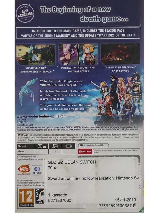 Sword Art Online Hollow Realization Deluxe Edition Nintendo Switch joc second-hand