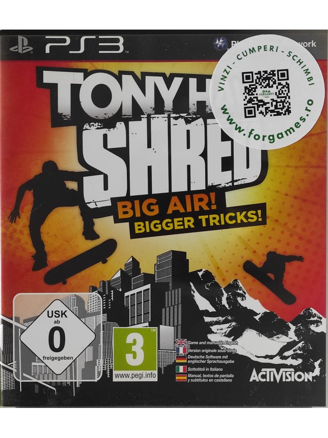 Tony Hawk: Shred duce experiența jocurilor de sport la un nivel complet nou, punându-te la propriu pe placa de skateboard. Conceput special pentru a fi jucat cu controlerul inovator sub formă de placă (senzor de mișcare), acest joc elimină butoanele clasice și îți permite să execuți trick-uri spectaculoase prin mișcările corpului tău. Este titlul perfect pentru copiii și tinerii care vor să facă mișcare în timp ce se distrează în universul legendarului Tony Hawk.