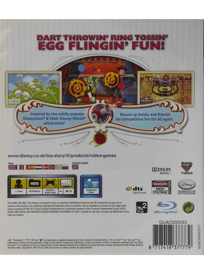Toy Story Mania pentru PlayStation 3 aduce pe ecran distracția celebrului parc de atracții Disney într-un joc plin de culoare, umor și provocări accesibile tuturor vârstelor. Inspirat din universul Toy Story de la Disney Pixar, jocul îi pune pe jucători față în față cu mini-jocuri interactive în stil shooting gallery, alături de personaje îndrăgite precum Woody, Buzz Lightyear și Jessie.