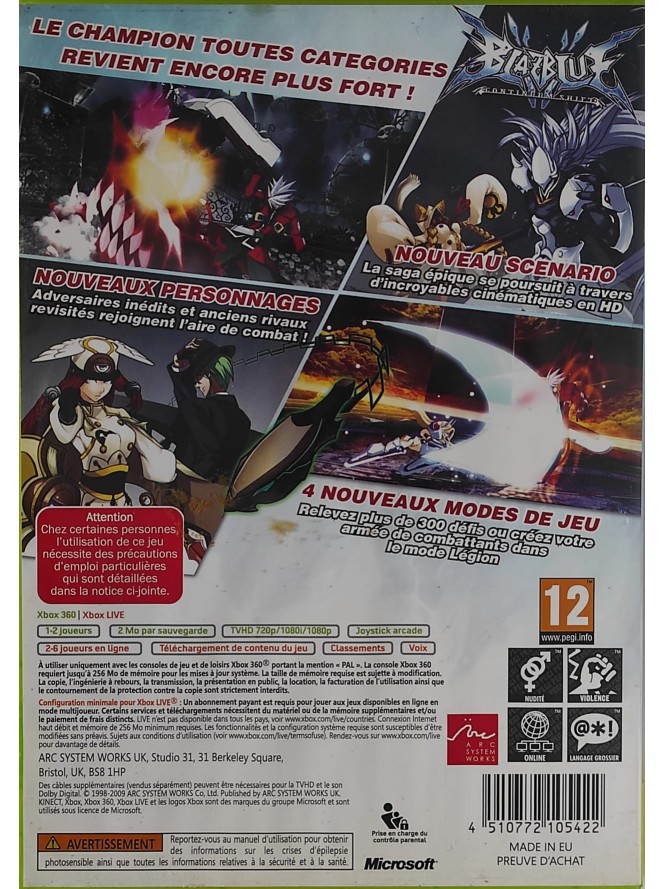 BlazBlue Continuum Shift Xbox 360 joc second-hand