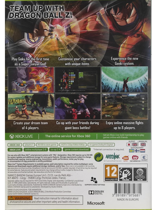 Dragon Ball Z Battle Of Z Xbox 360 este un joc de tip fighting lansat de Namco Bandai in data de 1/24/2014, disponibil pentru Xbox 360, PlayStation Vita si PlayStation 3.