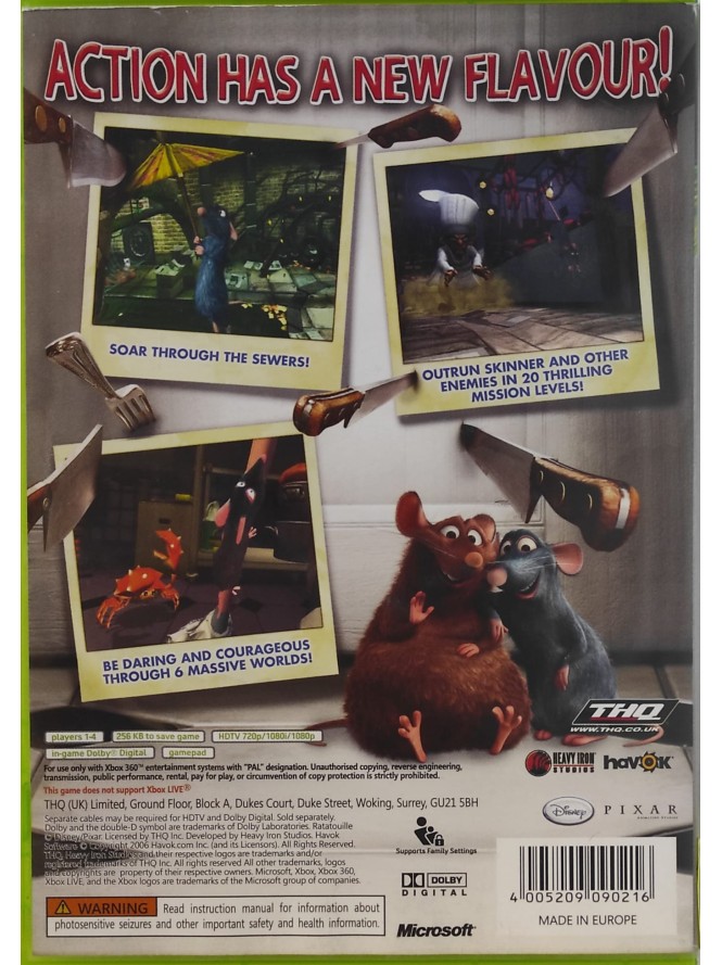 Jocul Ratatouille este bazat pe filmul omonim de la Disney/PIXAR. Dupa succesul de anul trecut Disney/PIXAR ne introduc intr-un univers nou si original in care doua personaje complet opuse se intalnesc si fac echipa, un soarece si un bucatar de 5 stele, de la un restaurant frantuzesc. Ratatouille ofera o noua perspectiva pentru genul de actiune si cu siguranta atrage jucatorul in universul plin de mini-jocuri, jafuri amuzante, actiune si urmariri nebunesti. Tanarul soarece pe nume Remy viseaza la a fi un bucatar celebru si, in ciuda obstacolelor evidente, reuseste. Destinul ii indruma pasii catre canalul de sub un restaurant din Paris unde se gaseste legendarul bucatar Auguste Gusteau. Remy se decide sa isi inplineasca visul desi este un musafir nepoftit in bucatariile de top. El se imprieteneste cu Linguini, un ajutor de bucatar, si il ajuta pe acesta sa prepare mancarea. Pasiunea lui Remy pentru gatit da nastere la tot felul de situatii comice care dau peste cap lumea culinara din Paris. In joc apar momente cheie din film. Actiunea este condusa de Remy impreuna cu toata colonia de soareci. Sunt 5 lumi diferite de explorat si puteti juca cu Remy sau cu Emil (fratele mai mic al lui Remy). De asemenea puteti juca peste 20 de mini-jocuri delicioase. Jocul este disponibil pentru PC, iar vocile apartin actorilor din filmul original.