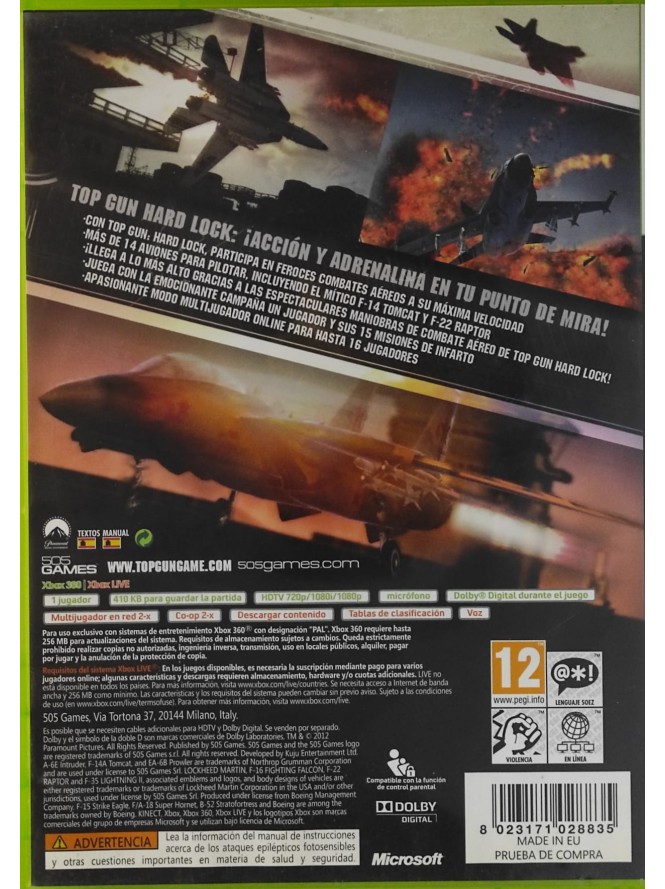 Pe lângă campanie, Top Gun: Hard Lock Xbox 360 oferă și moduri multiplayer, perfecte pentru confruntări aeriene competitive. Grafica detaliată, sunetul realist al motoarelor și ritmul alert fac din acest joc o alegere excelentă pentru pasionații de avioane de luptă și jocuri de acțiune.
