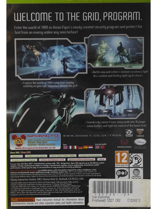 TRON: Evolution este un joc de acțiune și aventură inspirat din celebrul univers Disney TRON, care face legătura dintre filmul clasic și TRON: Legacy. Versiunea pentru Xbox 360 oferă o experiență intensă în lumea digitală, plină de lupte rapide, parkour și explorare futuristă.